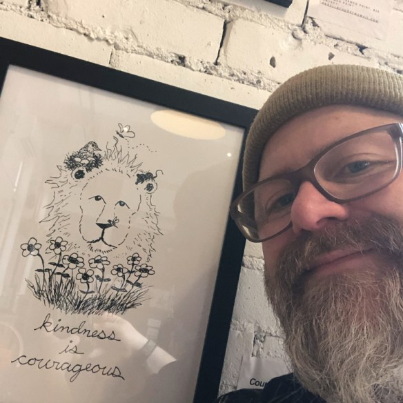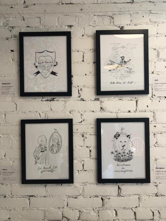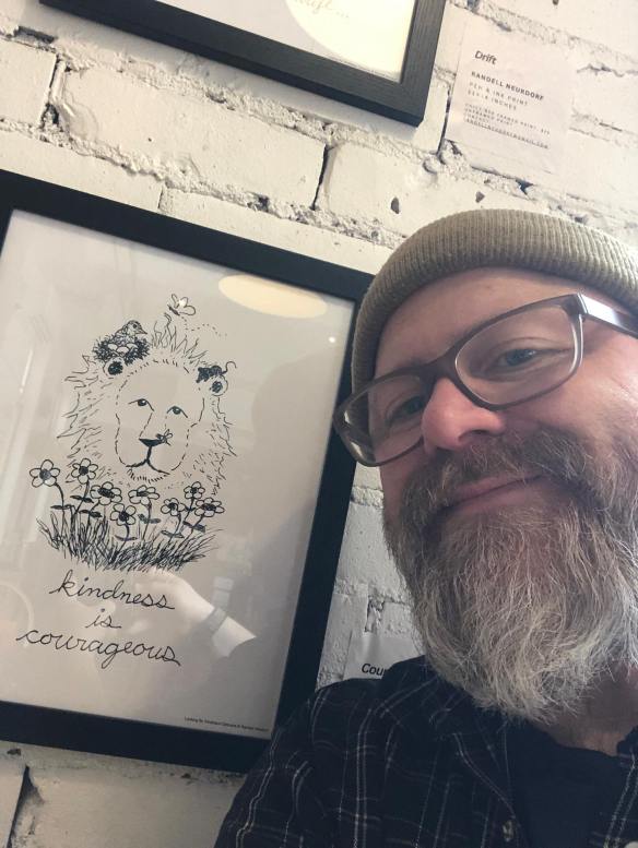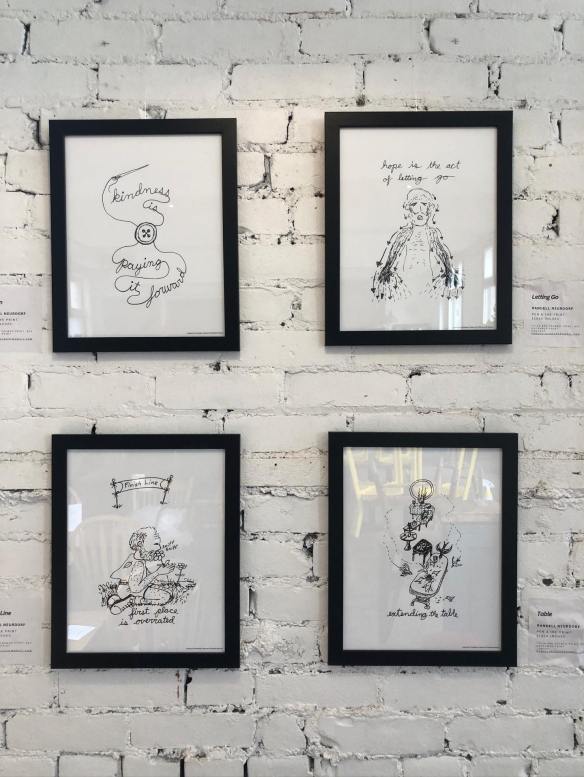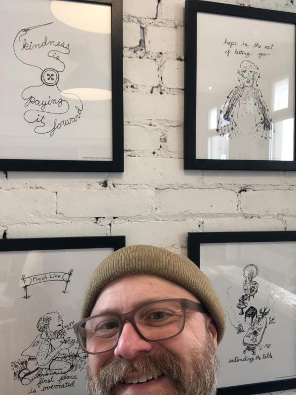 The 541 Eatery & Exchange currently has my Kindness Cartoons hanging on the walls. The show runs to about the end of May. I do prayer and outreach in the cafe on Thursdays, and I’m hoping that some good conversations are sparked by my art being up in the room.